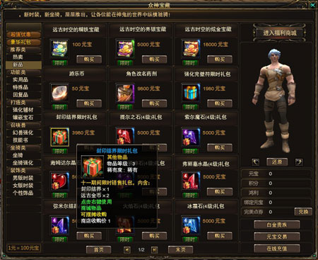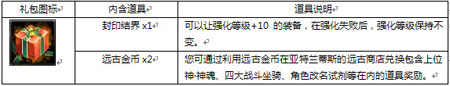 1、封印结界礼包:(和原先同样的价格,还免费送2枚远古金币哦!)