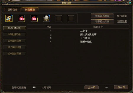 所在服务器内最先达到封印等级的玩家可出现在等级封印排行榜内,出现在等级排行榜内后您将可获得以下各种丰厚好礼。