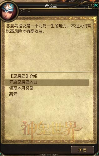 每周都可以由军团的族长发布一次恶魔岛任务,时间由族长自行安排。恶魔岛任务可以在亚特兰蒂斯的恶魔岛使者希拉里处(89,151)接取消灭14批怪后,将得到丰厚的奖励,以及军团的资金和繁荣度。(详情可见神鬼大事纪—恶魔岛军团)